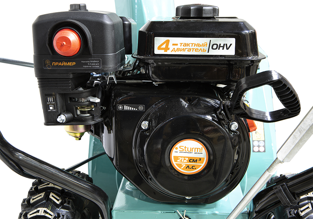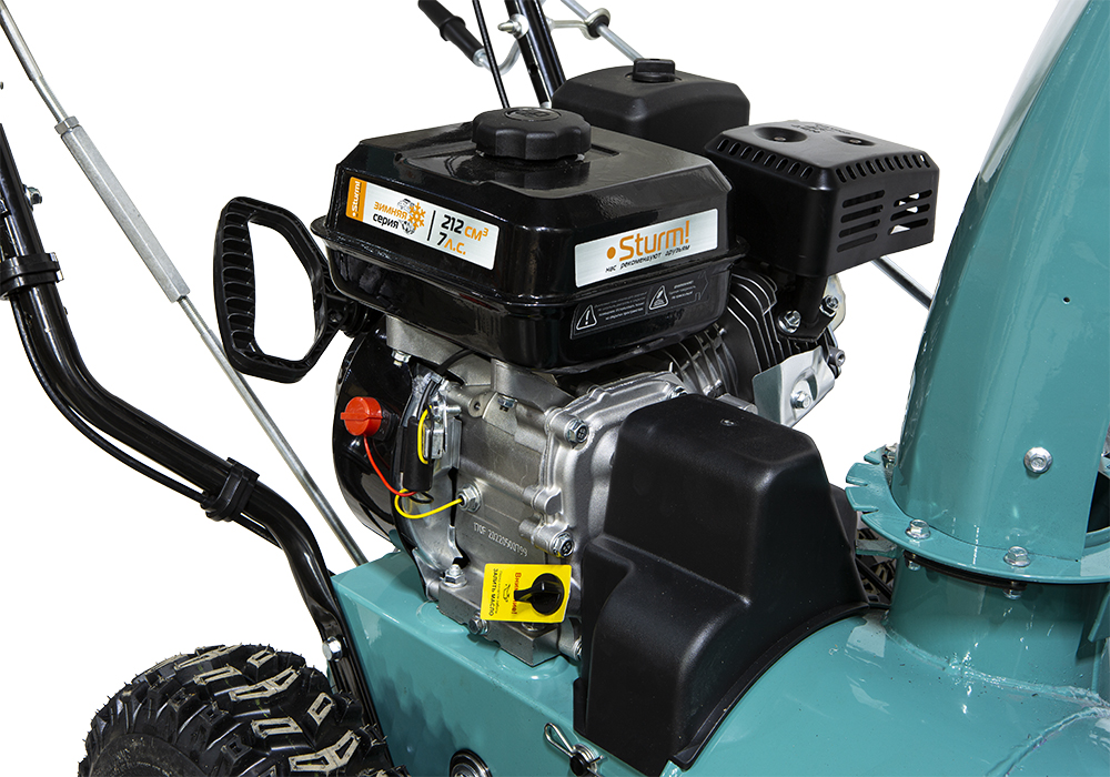 Бензиновый снегоуборщик Sturm! STG7661R - это самоходная двухступенчатая снегоуборочная машина, оснащена зимним вариантом надежного четырехтактного бензинового двигателя модели 170F. Система управления двигателем обеспечивает его работу в оптимальном диапазоне максимального крутящего момента, что даёт хорошую энерговооружённость для выполнения тяжёлых работ.