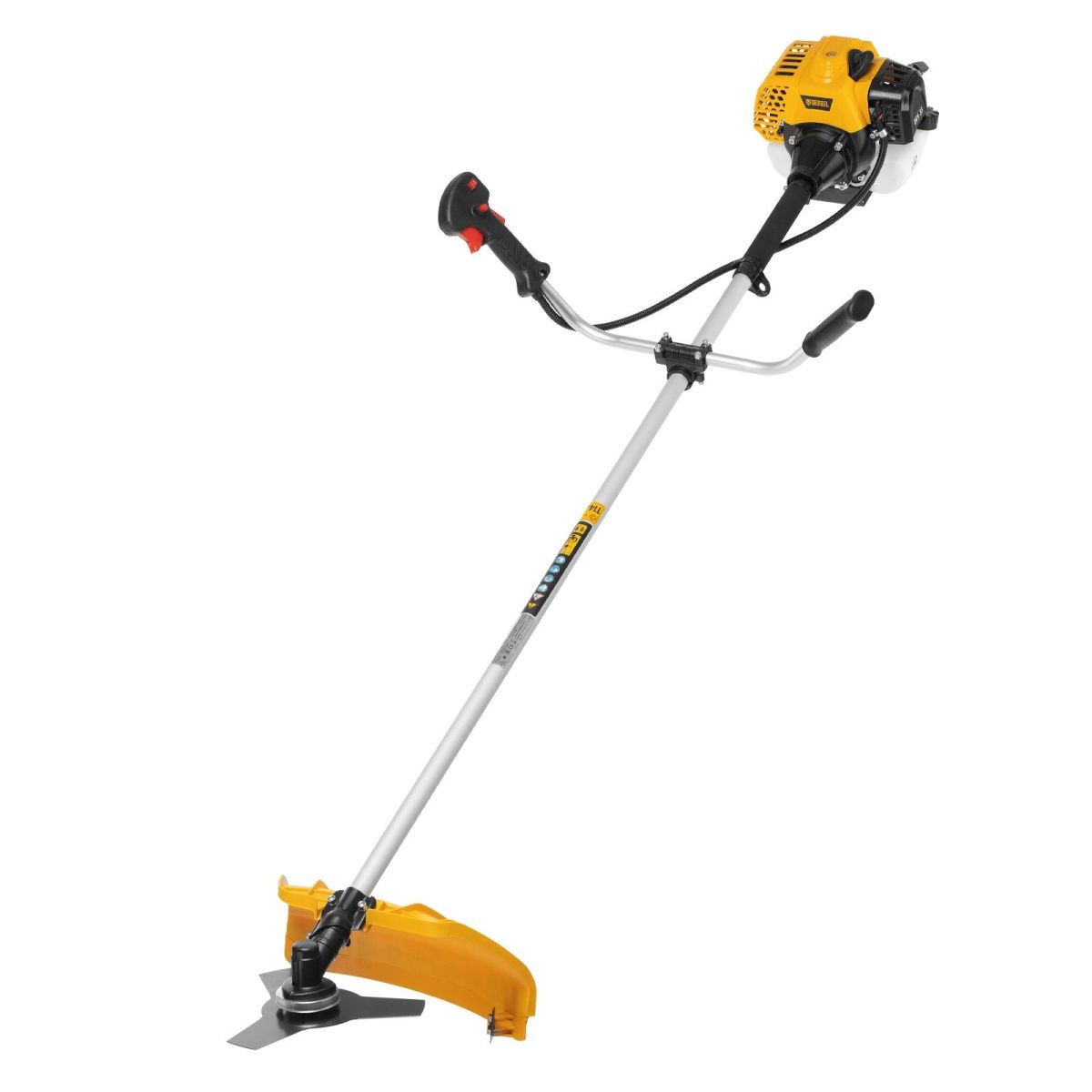 Триммер бензиновый Denzel DTS-33 962115 с двигателем объемом 33 куб. см и неразъемной штангой поставляется комплектом из 2 частей. Усиленная катушка с леской предназначена для скашивания мягкой травы, а трехлопастный нож &mdash, для борьбы с густыми зарослями, многолетними сорняками, молодым кустарником и растительностью с толстыми стеблями. Ширина прохода леской составляет 42 см, ножом &mdash, 25,5 см, что позволяет выполнять большие объемы работ.Двухтактный бензиновый двигатель мощностью 1,8 л. с. обеспечивает эффективное решение поставленных задач и полную автономность. Работать можно даже в самых отдаленных участках сада, не заботясь о наличии сети электропитания.ПреимуществаВысококачественное исполнение &mdash, надежный редуктор, двигатель с хромированным цилиндром и прочное сцепление обеспечивают стабильную работу триммера.Система легкого запуска Easy Start &mdash, трос стартера вытягивается легко и без рывков, что упрощает начало работы.Легкое включение &mdash, праймер для подкачки топлива упрощает запуск двигателя, поэтому включить триммер даже после долгого простоя будет несложно.Защита от случайного пуска &mdash, блокиратор курка газа предотвращает включение триммера по неосторожности, обеспечивая безопасность пользователя.Удобная работа без усталости &mdash, одноплечевая подвесная система перераспределяет вес бензотриммера, а мягкая защита бедра позволяет снизить уровень вибраций и избежать ударов.Безопасная эксплуатация &mdash, прочный кожух, закрывающий оснастку, защищает пользователя от летящей травы, грязи и мелких камней.Легкое обновление лески &mdash, достаточно слегка ударить полуавтоматической катушкой по земле, не снижая оборотов двигателя, что позволяет быстрее справиться с работой.Специальный нож на фартуке кожуха &mdash, концы лески подрезаются до нужной длины, это позволяет предотвратить перегрузку двигателя.Эргономичность &mdash, рукоятки велосипедного типа обеспечивают правильное положение рук, что делает работу с триммером комфортной.Быстрая подготовка к работе &mdash, бензотриммер поставляется с уже установленным на штангу редуктором и корпусом сцепления.Удобный дозатор в комплекте &mdash, емкость для приготовления топливной смеси не придется приобретать отдельно.Гарантия на заводской брак 3 года &mdash, качество и надежность инструмента подтверждены производителем.