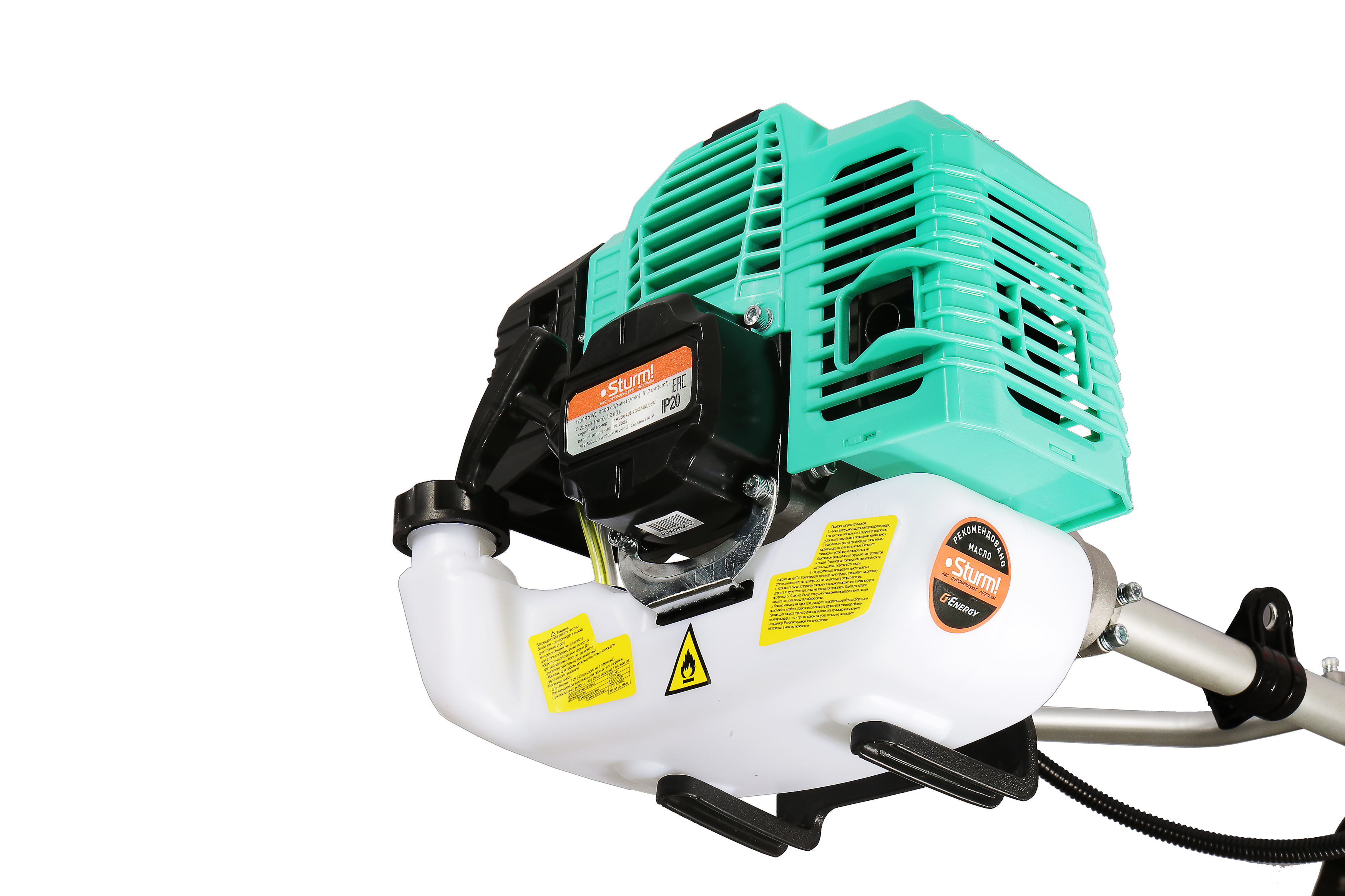 Общие рекомендации: для бесперебойной работы и долгого срока службы инструмента рекомендуется использовать неэтилированный бензин с октановым числом 92 единицы, а также специальное масло для двухтактных двигателей воздушного охлаждения Sturm OM0201B.
