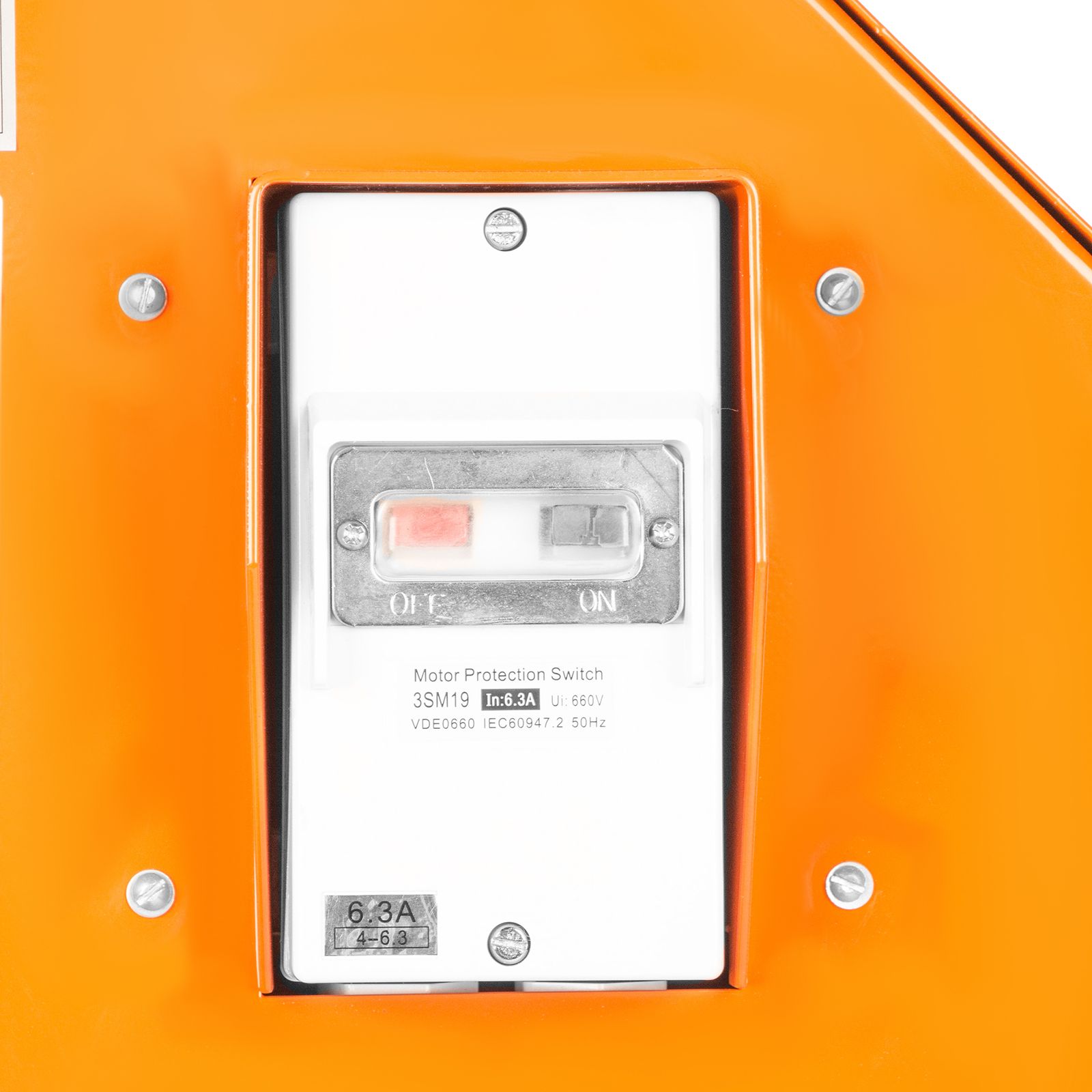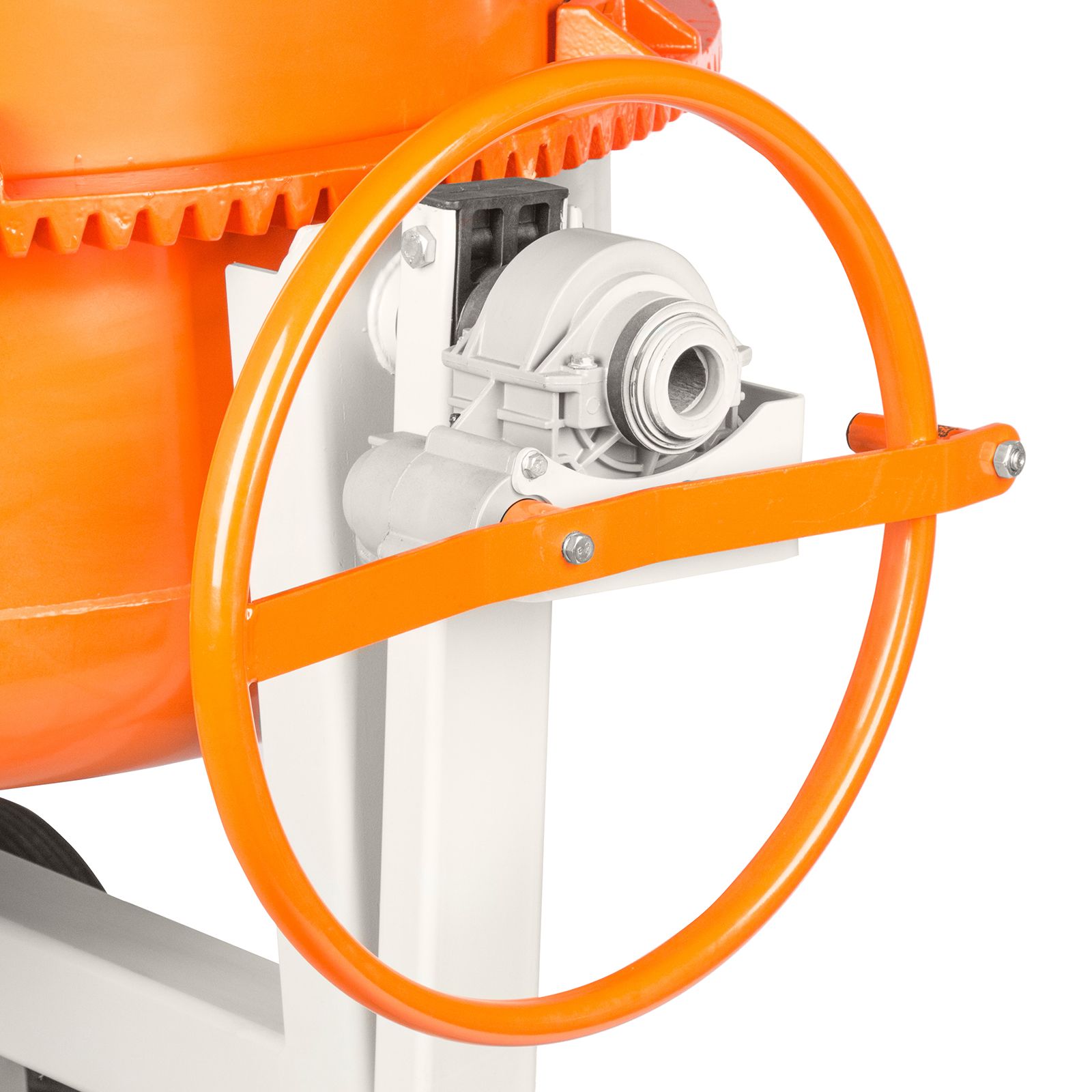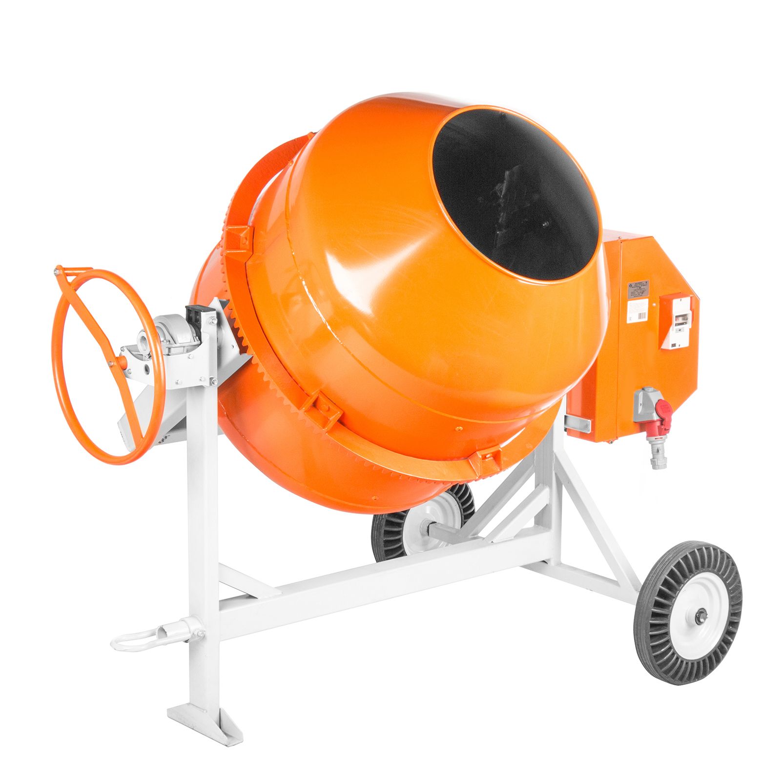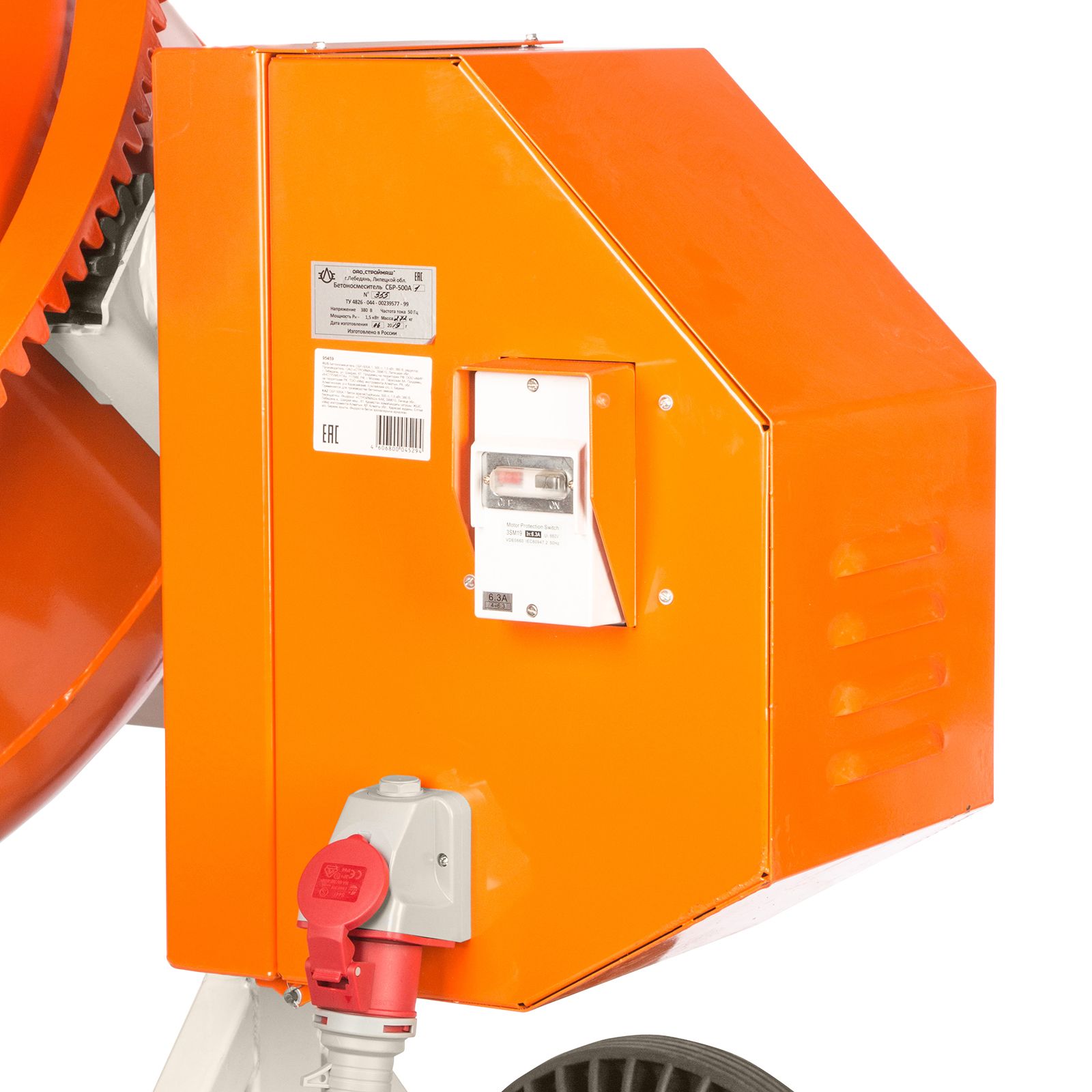 Бетоносмеситель СБР-500А.1 95459 мощностью 1,5 кВт, с редуктором и баком объемом 500 л работает от сети 380 В, отличается высокой производительностью и увеличенным ресурсом работы 3000 часов. Используется для приготовления строительных растворов и смесей при заливке фундамента, стяжки, укладке кирпича и плитки. Легко справляется с большими объемами замешивания в режиме интенсивной нагрузки — бак на 500 л позволяет получить 270 л раствора за один замес. Бетоносмеситель является профессиональным оборудованием для коммерческого использования.ПреимуществаНадежность — усиленная траверса изготовлена из металлического профиля, а толщина стенок стального барабана составляет 2 мм снизу и 1,5 мм сверху.Долговечность — мотор-редуктор с прямым приводом обеспечивает длительную бесперебойную работу и не требует постоянного технического обслуживания.Антикоррозийная защита — порошковая краска предохраняет стойку и бак от разрушения.Термозащита — двигатель автоматически отключается в случае перегрева, что предотвращает выход его из строя.Безопасность — металлический кожух препятствует попаданию в привод пыли, брызг воды и посторонних предметов, а токопроводящие элементы имеют двойную изоляцию.Простое управление — удобный механизм опрокидывания и фиксации наклона барабана упрощает загрузку, перемешивание и выгрузку смеси.Устойчивость — металлическая ножка с упором не дает бетоносмесителю опрокинуться во время работы.Разборная конструкция — бетоносмеситель удобно хранить и транспортировать, а съемный сетевой кабель легко заменить в случае необходимости.Мобильность — благодаря двум большим колесам бетономешалку легко перемещать по строительной площадке.