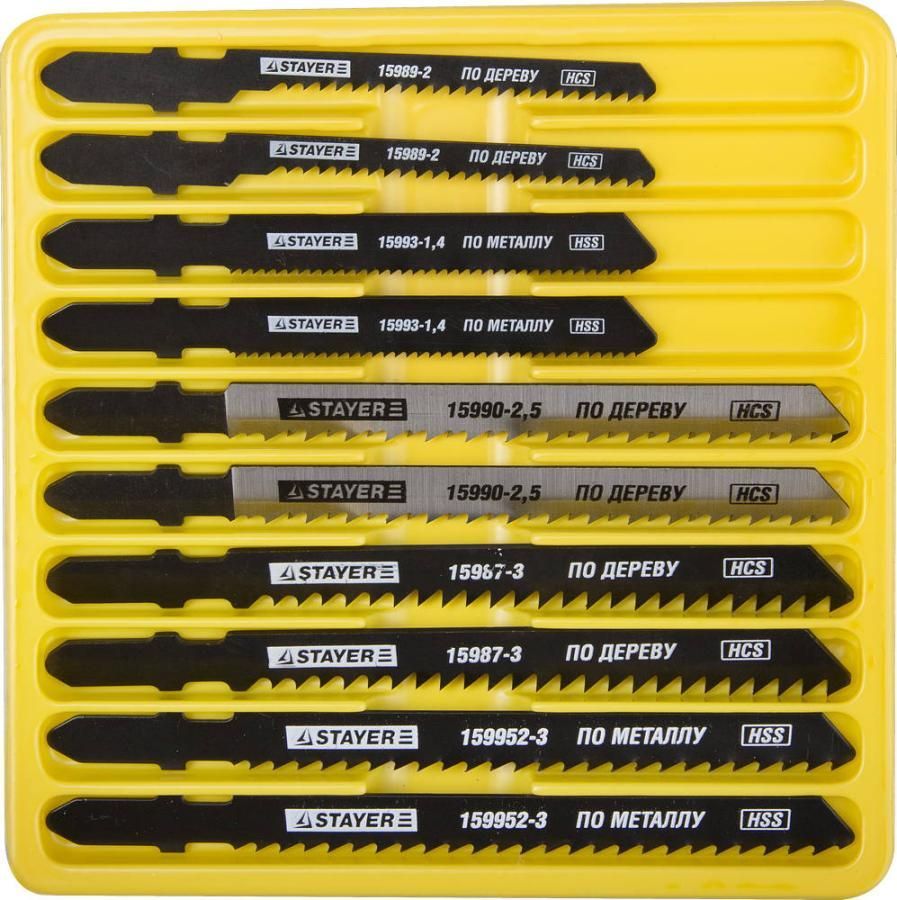 —Набор STAYER ″PROFI″ Полотна ″МАСТЕР №3″ для эл/лобзика, по дереву, мет. и пластику, T-хвост.,10шт