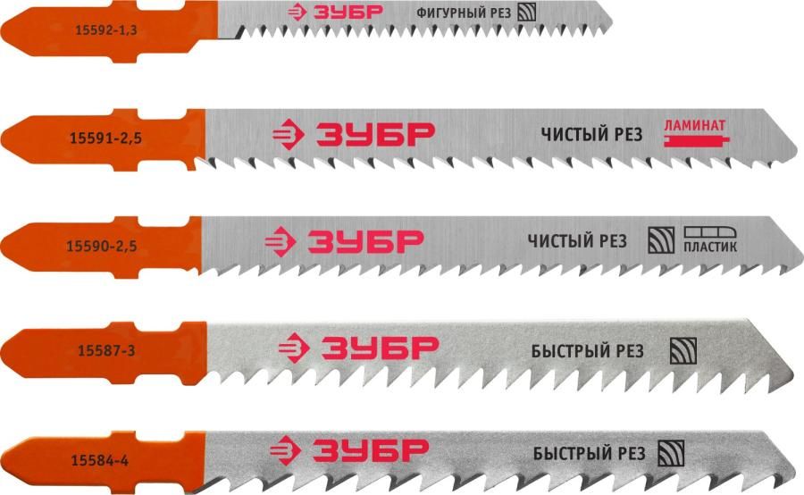 Полотна ЗУБР ″ЭКСПЕРТ″ для электролобзиков имеют увеличенную толщину рабочей части, что даёт повышенную устойчивость к излому и перегибу. Применяются на электрических лобзиках при резке массива древесины, многослойной фанеры и ДСП.