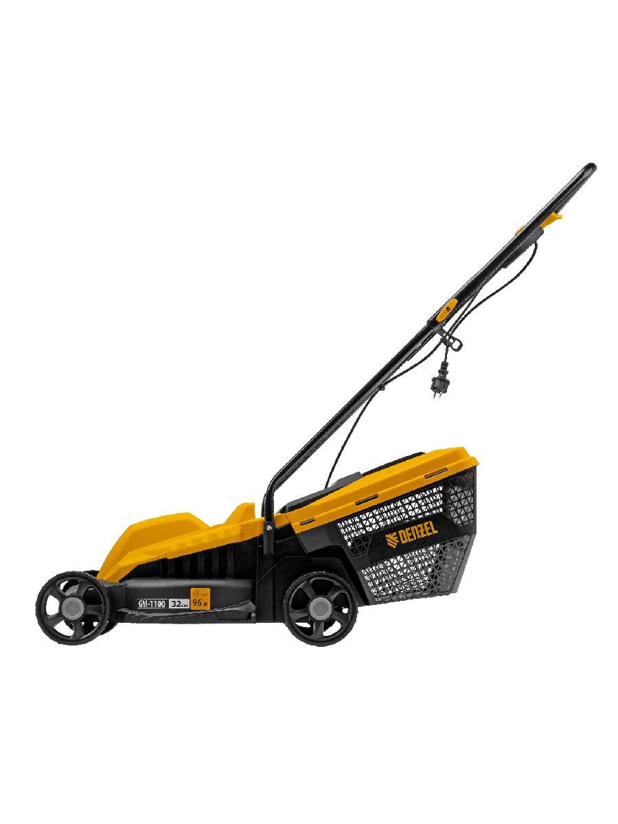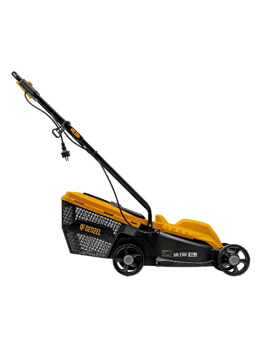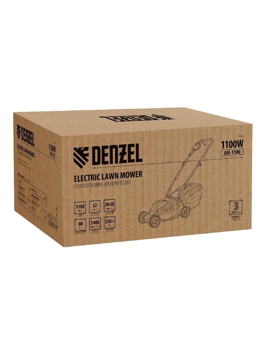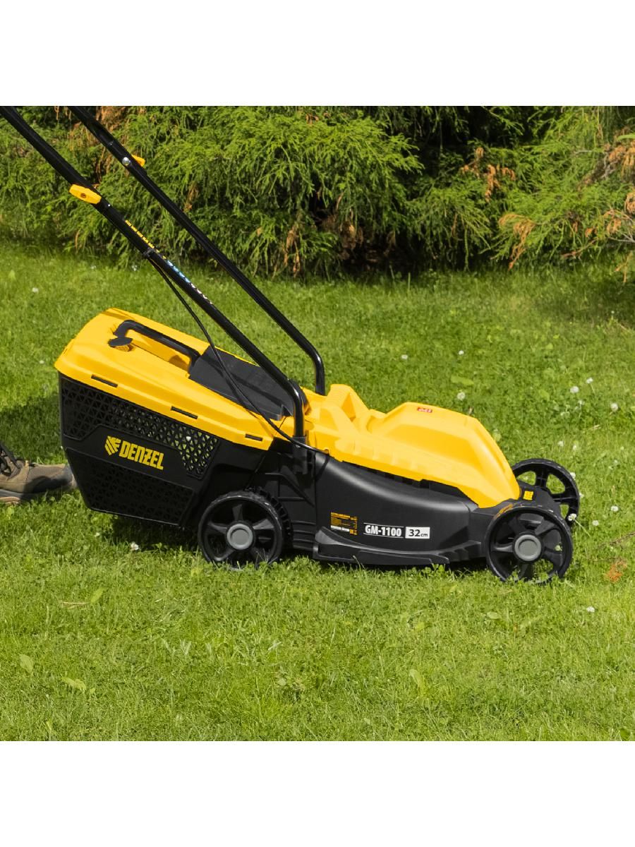 Газонокосилка электрическая Denzel GM-1100 96626 мощностью 1100 Вт, с травосборником объемом 30 л и 3 уровнями скашивания, обеспечивает ширину прохода 32 см и предназначена для стрижки газонов, кошения травы в саду и на небольшом приусадебном участке. Высота скашивания устанавливается на уровне 30, 50 или 70 мм в зависимости от типа газона. Газонокосилка проста в управлении и обслуживании, с ней легко справится неопытный пользователь.