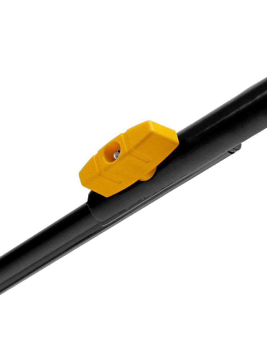 - Мобильность — 2 пары колес и транспортировочная ручка облегчают перемещение косилки по участку.