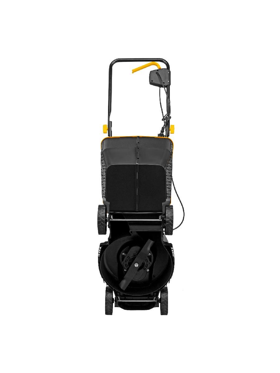 Газонокосилка с установленным ножом - 1 шт, Травосборник - 1 шт, Стойка нижняя - 1 шт, Стойка верхняя (с рукояткой) - 1 шт, Фиксатор кабеля питания - 1 шт, Фиксатор удлинителя - 1 шт, Набор крепежа - 1 шт, Руководство по эксплуатации - 1 шт, Гарантийный талон - 1 шт