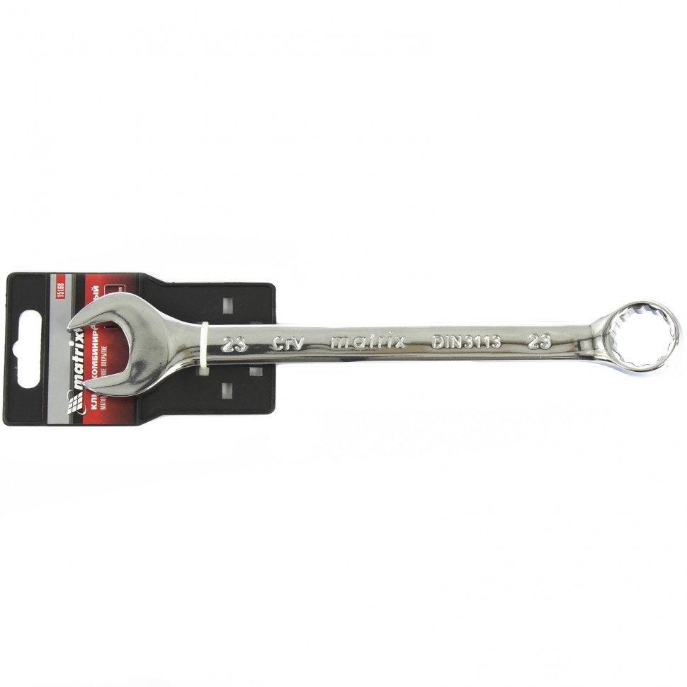 Ключ комбинированный Matrix 15168 из стали CrV, 23 мм, с покрытием «полированный хром», пригодится при проведении ремонтных работ дома или в гараже. С его помощью можно осуществлять быстрый монтаж и демонтаж крепежных элементов. Кольцевой зев обеспечивает удобство работы благодаря углу наклона 15 градусов относительно плоскости инструмента.