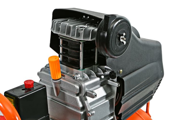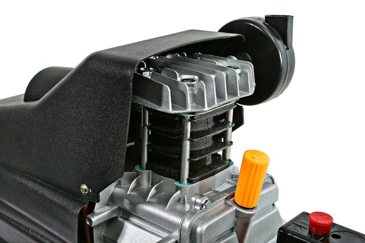 - Литой чугунный цилиндр обеспечивает высокий ресурс компрессора;