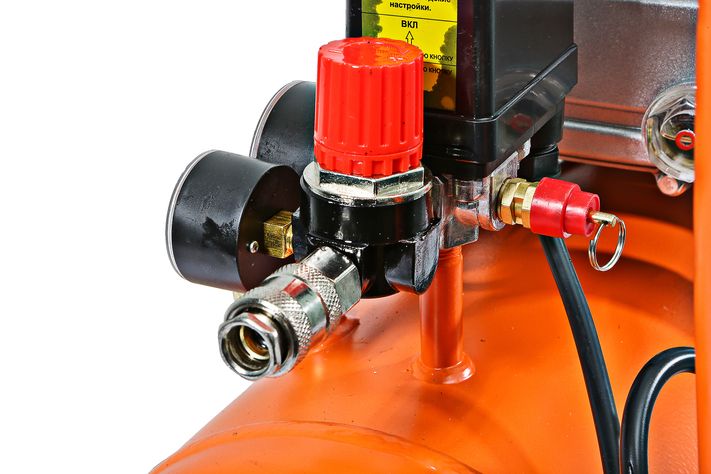 Реле и регулятор давления с манометрами на входе и на выходе позволяют создавать и контролировать требуемое давление.