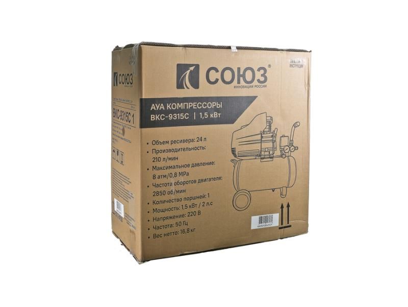- Воздушный компрессор ВКС-9315С подходит для снабжения пневмоинструментов и оборудования рабочим давлением не более 8 бар;