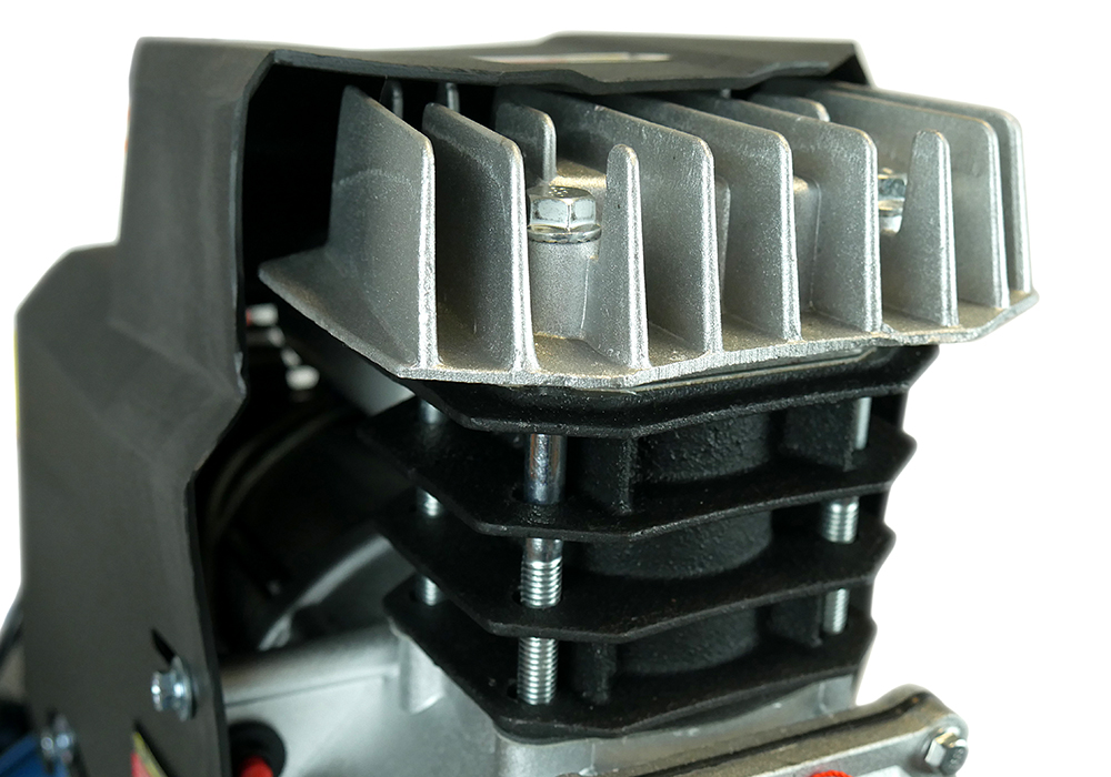 Увеличенный объем цилиндра повышает скорость поднятия давления в ресивере и производительность компрессора на 40% относительно стандарта.