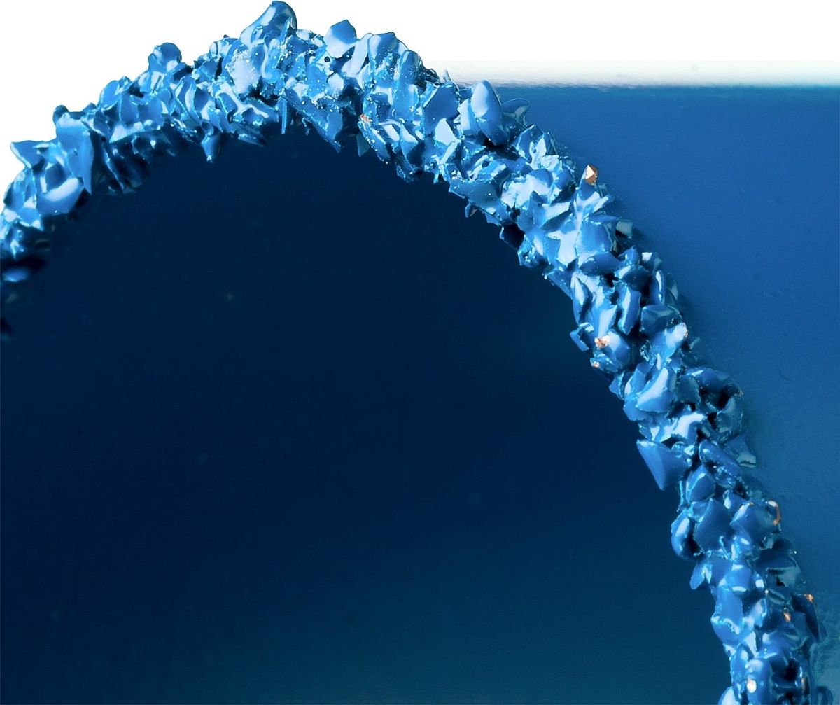 - Равномерное нанесение карбид-вольфрамовой крошки обеспечивает аккуратное сверление материала без трещин и сколов.