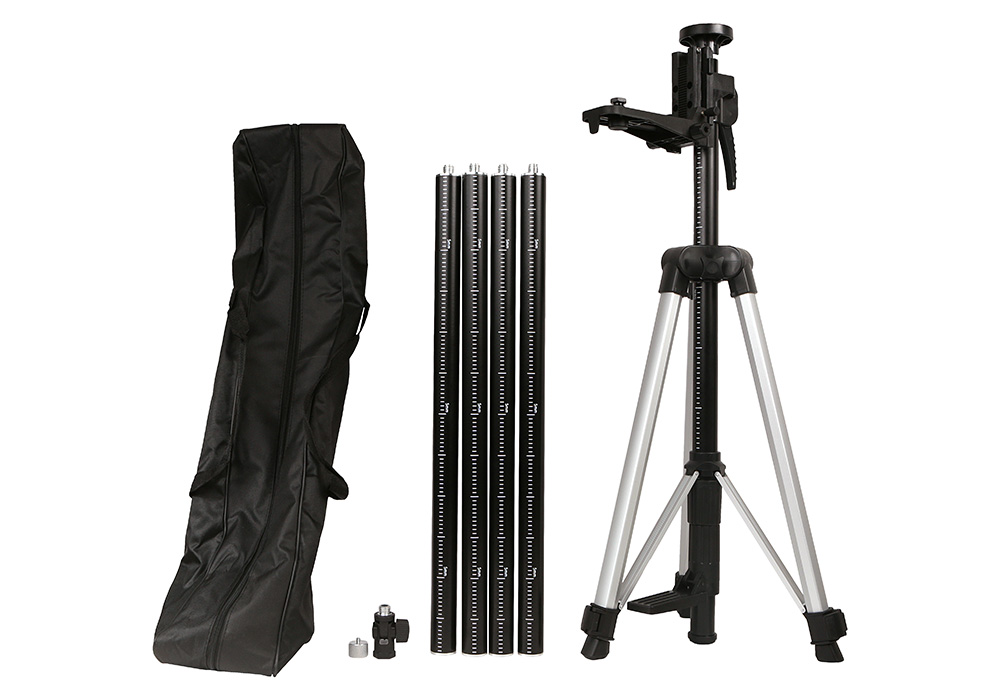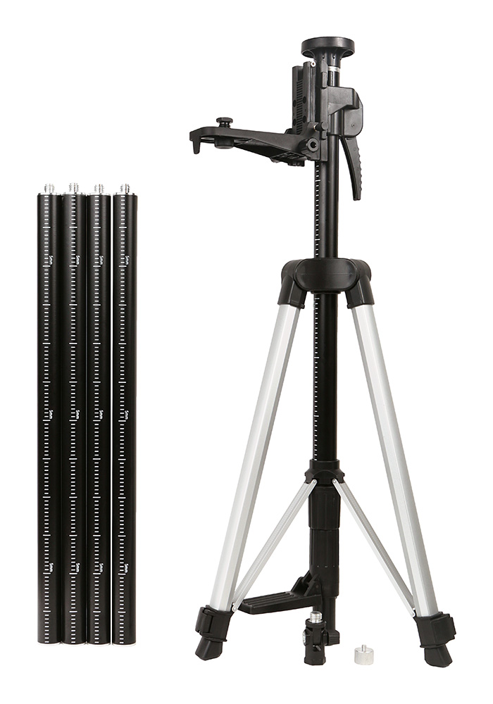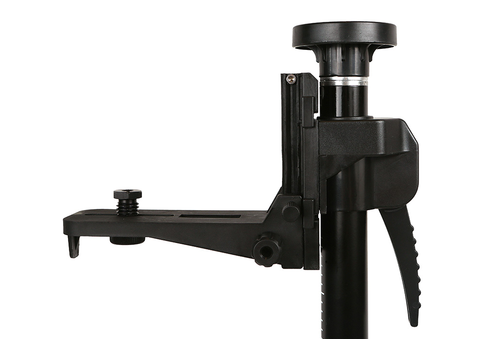 Лазерный прибор крепится на площадку, которая перемещается вдоль всей штанги, обеспечивая его фиксацию на необходимой рабочей высоте.
