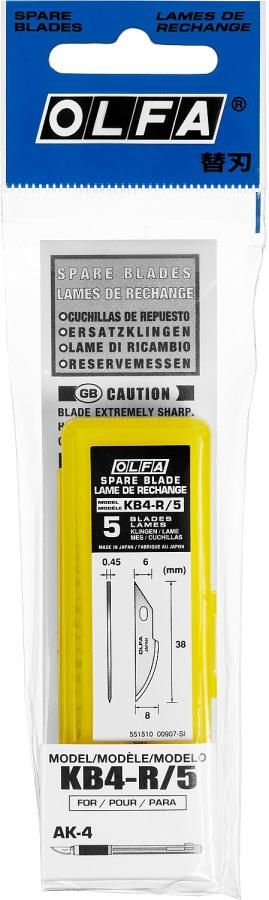Изогнутые лезвия для художественной резьбы OLFA KB4-R/5 подходят для работы с тонкой бумагой, создания трафаретов или для сложной детальной работы. Изготовлены из высококачественной японской инструментальной стали и профессионально заточены для обеспечения превосходной остроты и непревзойденной долговечности режущей кромки.<br> Поставляются в пластиковом футляре для хранения и утилизации.