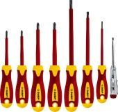 Отвертки SL (SL 3, 5, 8) - 3 шт, Отвертки PH (PH 1, 2) - 2 шт, Отвертки PZ (PZ 1, 2) - 2 шт, Тестер напряжения 100-250 В (70 мм) - 1 шт