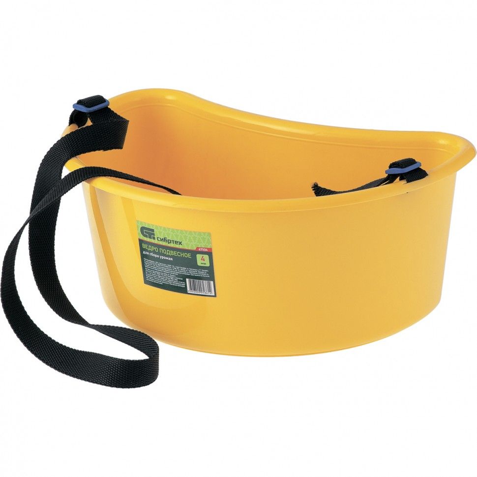 Ведро для сбора урожая Сибртех 67504 с наплечным ремнем, 4 л, пригодится на даче для собирания ягод, овощей и фруктов. Его можно повесить на плечо или шею за ремешок, что позволяет работать обеими руками без необходимости наклоняться. За счет полукруглой формы ведро удобно прилегает к телу, поэтому не доставляет дискомфорта даже при полной загрузке.
